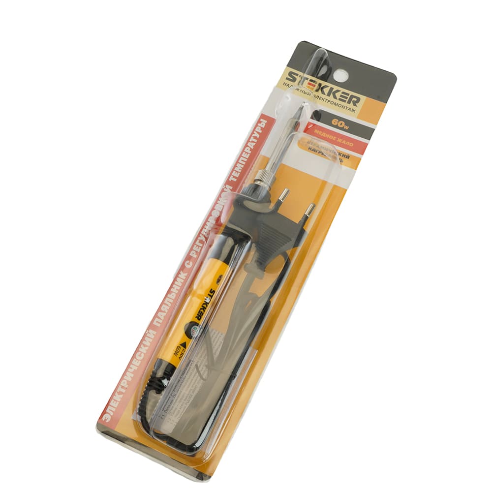 Паяльник с регулировкой температуры, керам.нагреватель, 60Вт, 230В, STEKKER PLE602-60