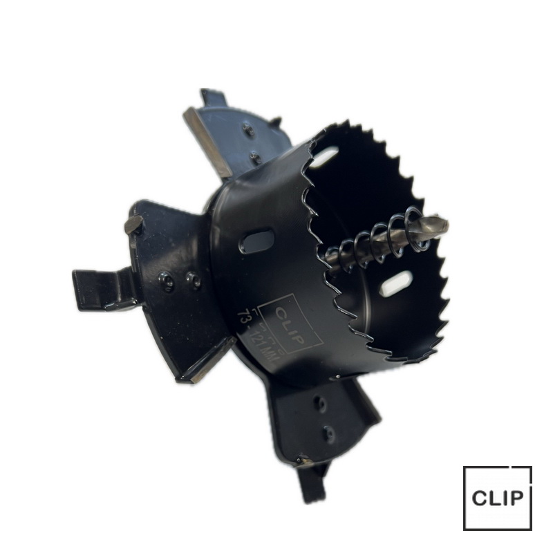 Инструмент, предназначенный для производства двух отверстий разного диаметра, что необходимо для установки корпуса светильника AntiSPOT. 73мм в верхнем слое и 121мм в нижнем.