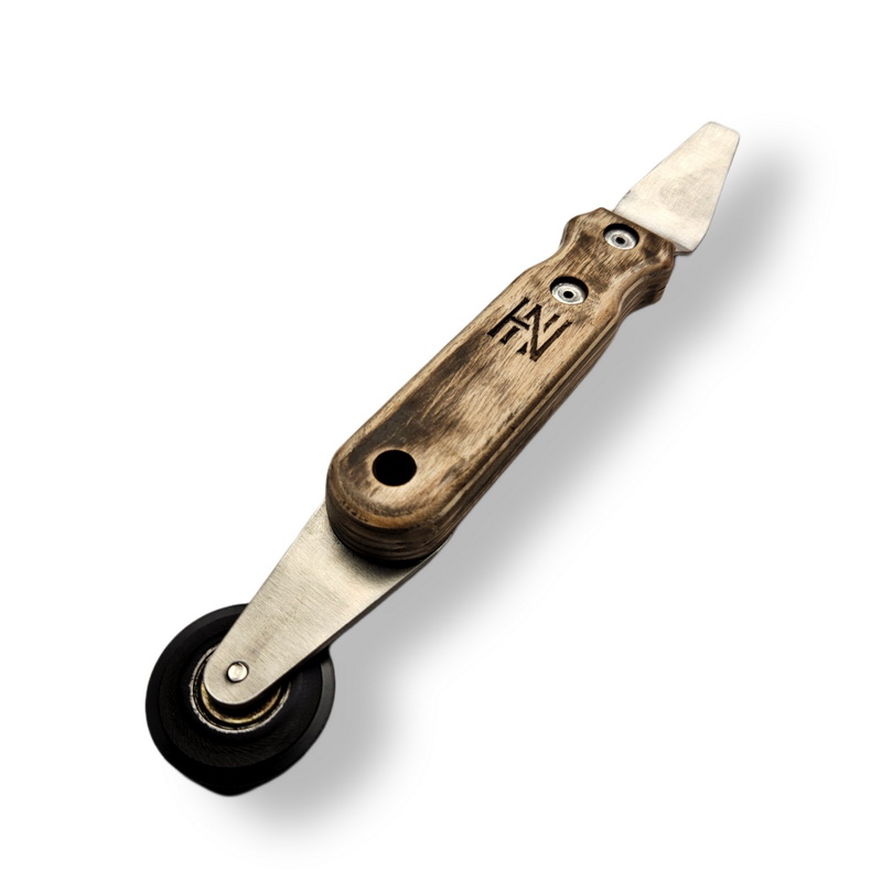 Вставщик ролик инструмент для установки мягкой вставки методом закатывания, на обратной стороне имеет удобный шпатель для поправки вставки, дозаправки гарпуна и подчистки монтажной щели от краски или обоев. Может использоваться для заправки гарпуна в узких местах.