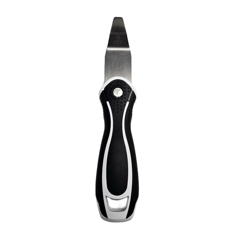 Лопатка имеет изогнутую заострённую форму и ширину «носика» всего 0,8 см, эргономично лежит в руке. Используется в узких труднодоступных местах, например, за газовыми или водопроводными трубами, проходящими близко к стене, применяется для заправки полотна в острых углах ниш и коробов. Изгиб металлической части спроектирован так, чтобы удобно было заправить потолок не повредив обои и потолок.