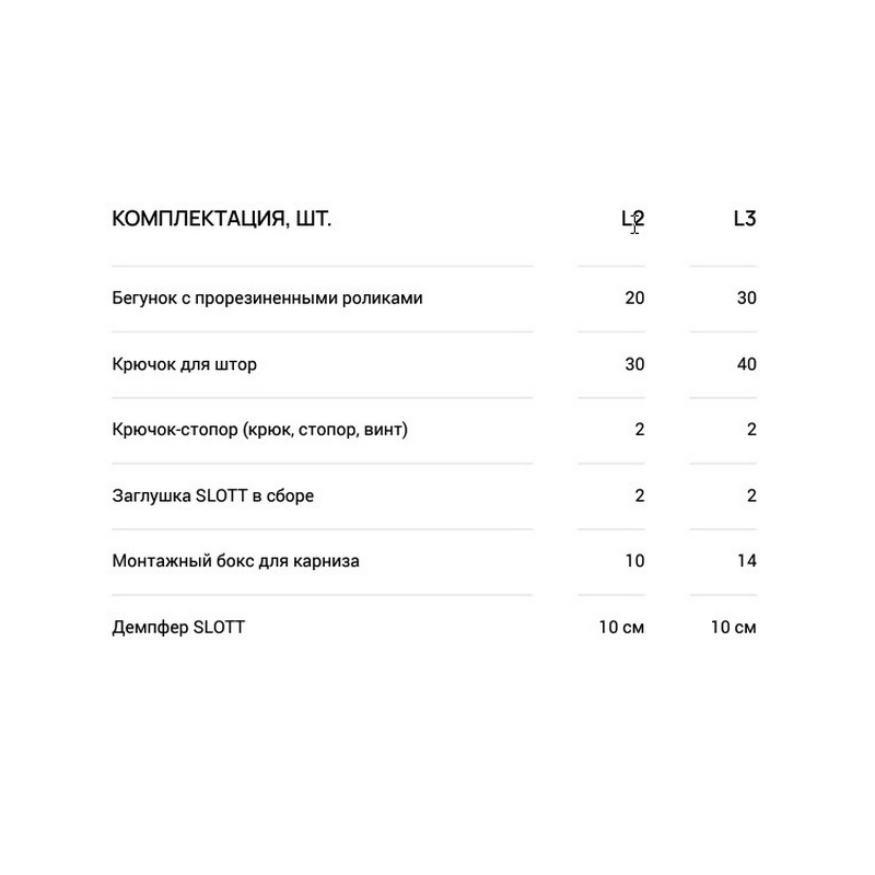 Комплект для сборки механического карниза Slott Motion L3 белый. Предназначен для сборки карниза длиной 3 м.