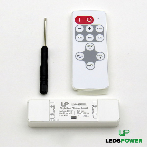 Контроллер LP-N10-S-15A предназначен для управления светодиодной продукцией, работающей в диапазоне DC 5-24В. С помощью пульта дистанционного управления можно регулировать яркость свечения и выбирать различные динамические режимы работы.