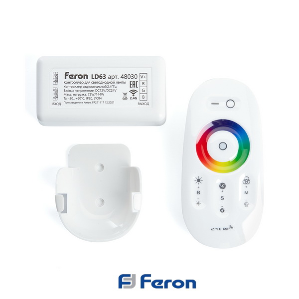 Контроллер RGB, Feron, LD63 (72-144W) для светодиодной ленты, сенсорный белый с пультом, 48030