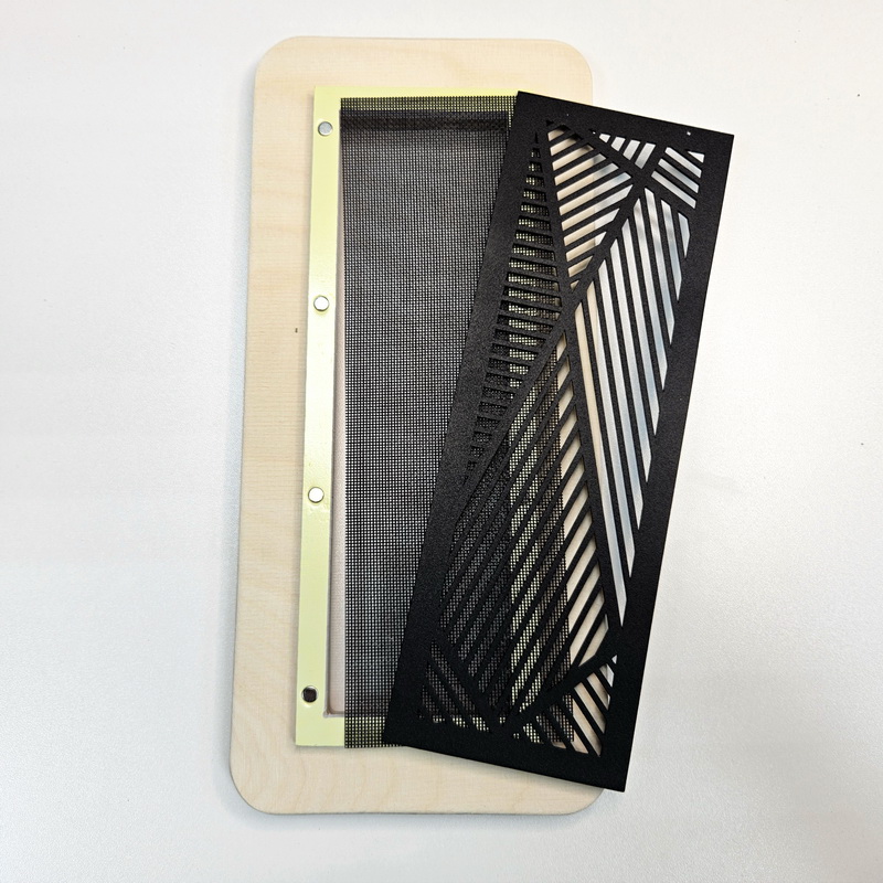 Магнитная вентиляционная решетка 204*60 прямоугольная, чёрная, платформа фанера