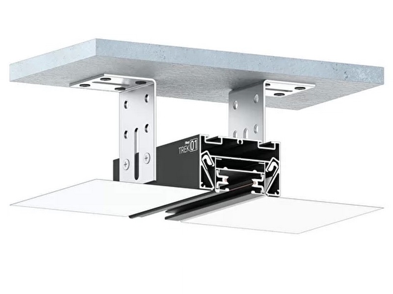 Разделительный профиль Flexy TREK 01 для натяжных потолков с гарпунной системой крепления полотна. Для установки однофазной трековой шины. Для изготовления встраиваемых и накладных световых линий, подвесных и накладных светильников, щелевых вытяжек.