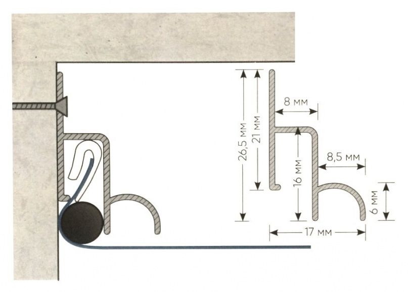 За счет идеального примыкания полотна к стене, Kraab 3.0 позволяет установить натяжной потолок визуально не отличимым от потолка из гипрока.