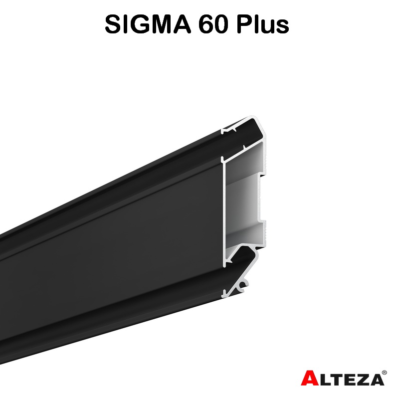Профиль для создания ниши в натяжном потолке для штор, SIGMA 60 Plus, чёрный