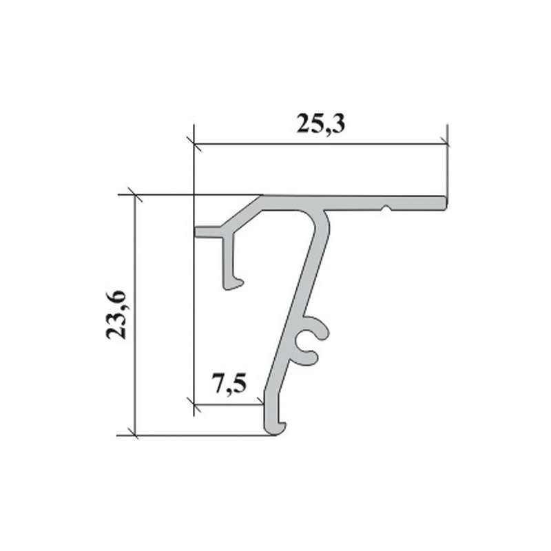 Алюминиевый профиль для монтажа натяжного потолка без вставки с эффектом теневого зазора.