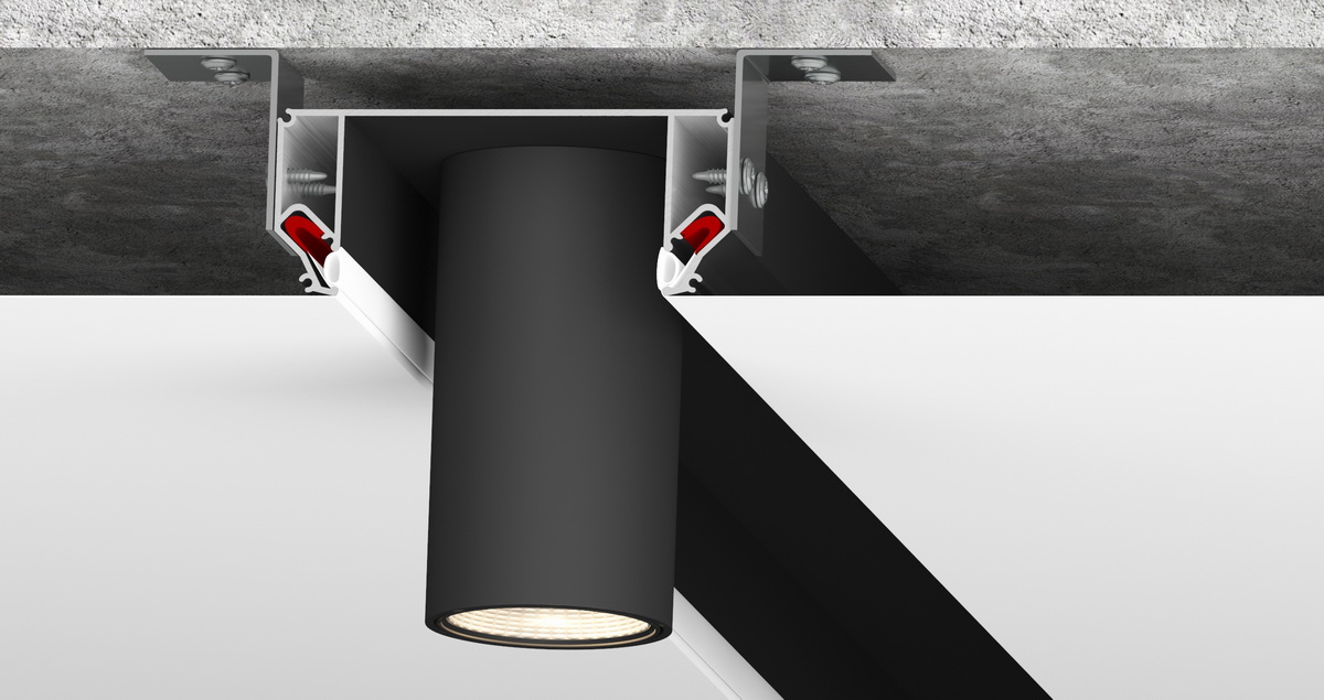 Ниша LumFer N02 — это решение, позволяющее установку светильников (спотов), трековых систем, линейных светильников.Конструкция профиля предусматривает фиксацию полотна при помощи гарпунной системы крепления. Паз для фиксации гарпуна закрывается разделительной вставкой.