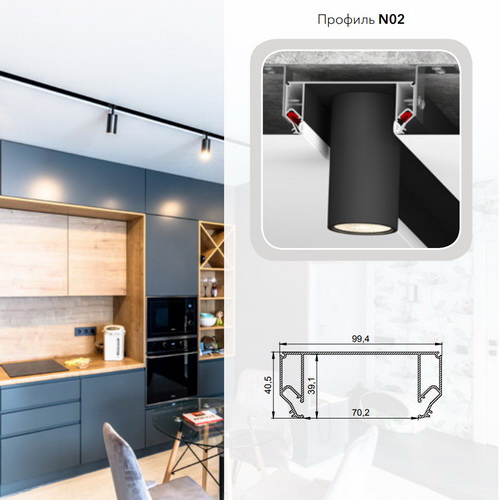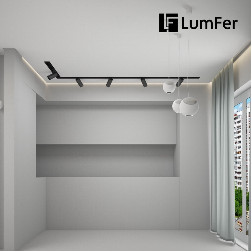 Ниша LumFer N02 — это решение, позволяющее установку светильников (спотов), трековых систем, линейных светильников.Конструкция профиля предусматривает фиксацию полотна при помощи гарпунной системы крепления. Паз для фиксации гарпуна закрывается разделительной вставкой.