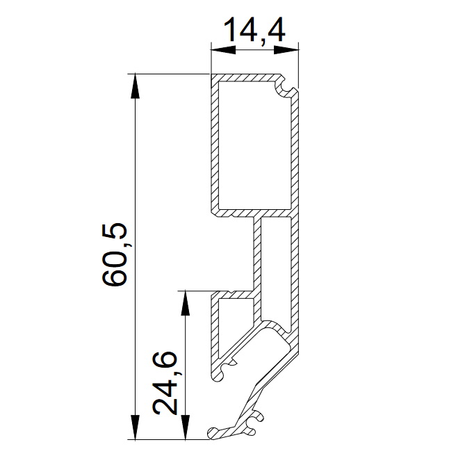 Переход для карниза LumFer PDK60 – это специальный алюминиевый профиль, окрашенный в белый или черный цвет, предназначенный для изготовления ниши под карниз. Конструкция профиля предусматривает возможность установки подсветки. Паз для светодиодной ленты закрывается ПВХ рассеивателем для более равномерного и плавного рассеивания света. Паз для заправки гарпуна закрывается разделительной