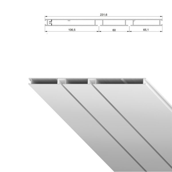 Универсальный профиль Sputnik LumFer представляет собой алюминиевую конструкцию белого или черного цвета с двумя рядами для крепления крючков с одной стороны и имеет ровную, плоскую поверхность с другой.