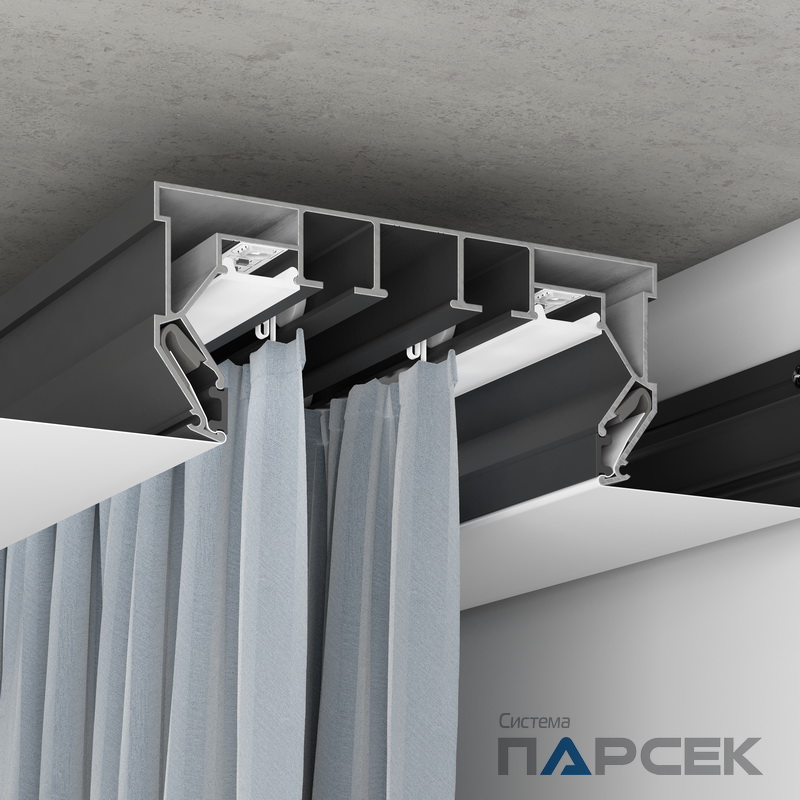 Профиль гардина ПК 14 для изготовления ниш под карниз потолочного крепления с местом крепления штор с подсветкой.