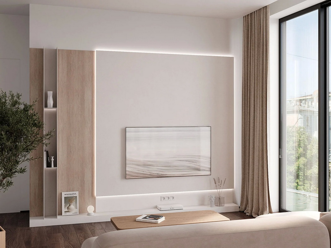 - Возможность интеграции в стену различных решений (телевизор, полки и т.п.)