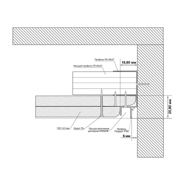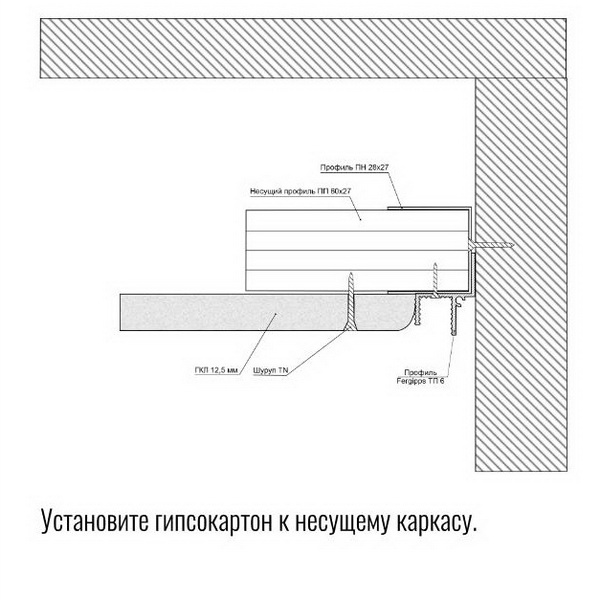 ТП 6 — Теневой профиль для гипсокартона FerGipps, белый 2м